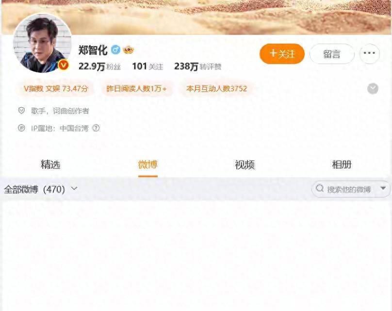 据传,台湾知名歌手郑智化的微博账号上已经没有任何动态,全部清空了。之前他说过三天后会关闭这个账号,不再玩微博了,好像他接下来也准备把账号注销了。