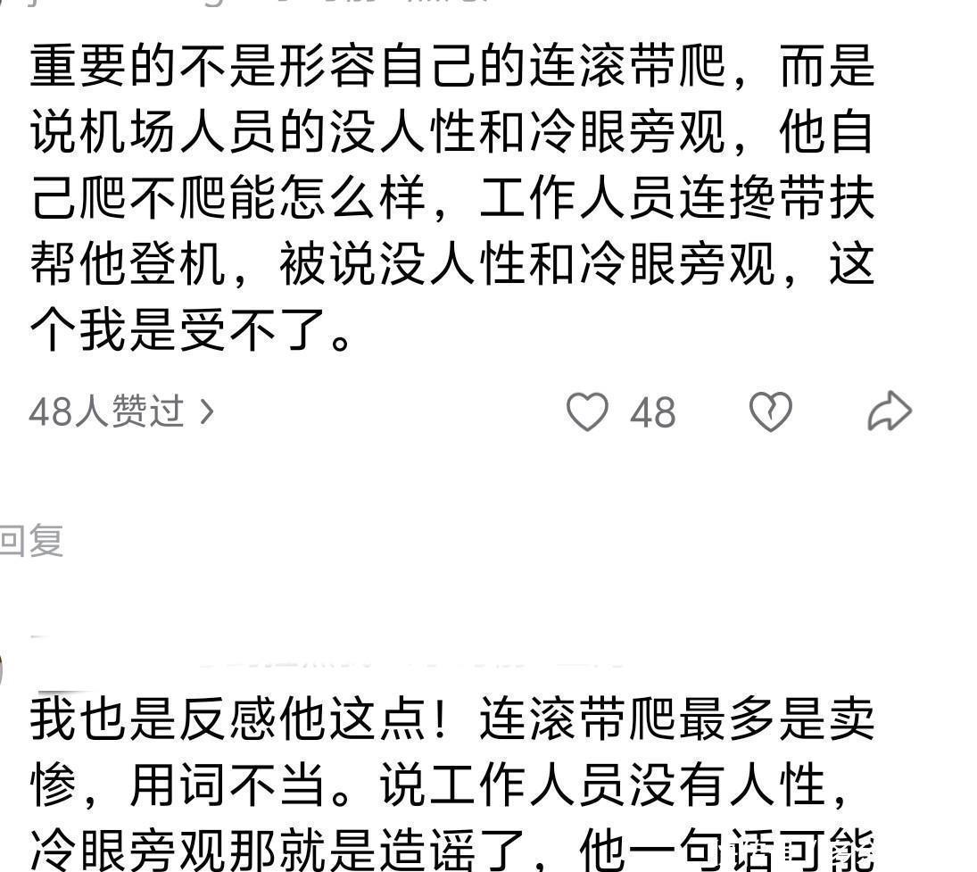 但是网友们一直不怎么信他,结果他就选择退出了网络圈。刚开始他说的话,让人觉得机场那些服务人员都冷眼旁观,至于升降机操作出了问题,只要实事说就行,偏偏说得夸张一点,像是在抹黑工作人员,搞得像是在污蔑似的。
